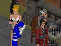 若ロン、シムブルーにガンつけ。